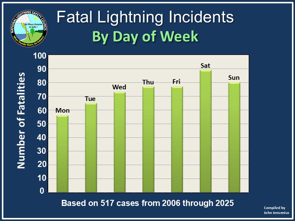 The following links provide summary graphs and charts of U.S. lightning fatalities during recent years.