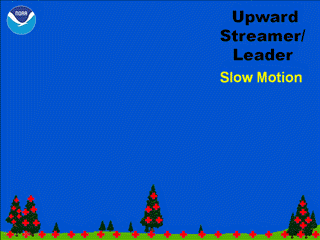 Upward streamers tend to develop from the taller objects beneath one or more branches of the stepped leader. When the downward-developing negative stepped leader makes contact with an upward-developing positive streamer, referred to as the attachment process, a conductive path is established for the rapid discharge of electricity that we see as a bright flash.