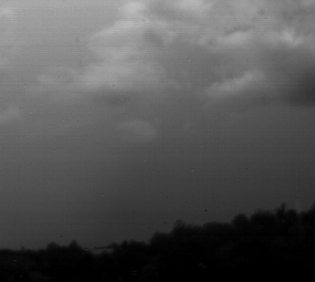 Although somewhat overexposed, this video shows a highly branched step leader approaching the ground. When one branch of the stepped leader makes a connection, a very bright return stroke surges upward through the channel. Note that the actual time between the appearance of the stepped leader in the cloud until the return stroke is about 1/133 of a second. Only one return stroke was recorded with this flash.