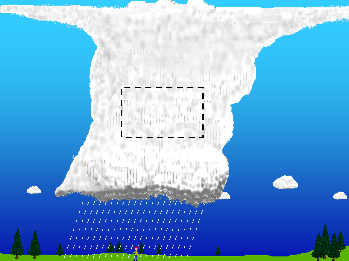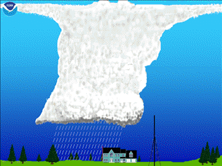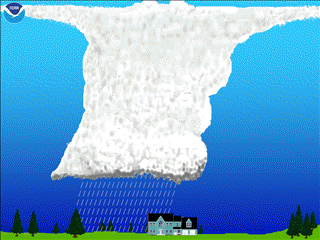 the thunderstorm cloud or falls toward the lower part of the storm. The result is that the upper part of the thunderstorm cloud becomes