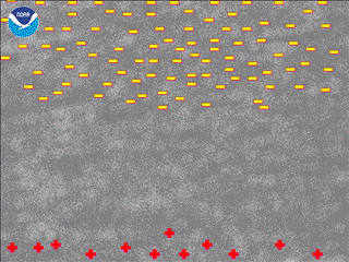 The upward motions within the storm and winds at higher levels in the atmosphere tend to cause the small ice crystals (and positive charge) in the upper part of the thunderstorm cloud to spread out horizontally some distance from thunderstorm cloud base. This part of the thunderstorm cloud is called the anvil. While this is the main charging process for the thunderstorm cloud, some of these charges can be redistributed by air movements within the storm (updrafts and downdrafts). In addition, there is a small but important positive charge buildup near the bottom of the thunderstorm cloud due to the precipitation and warmer temperatures.