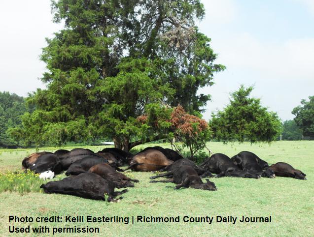 Ground current is responsible for killing many farm animals on a yearly basis. The threat of a fatal incident is affected by the distance between contact points with the ground and also the orientation of those contact points with respect to the lightning strike and discharge path. Farm animals have a long span between their front and back legs making them more vulnerable to ground current from a nearby lightning strike.
