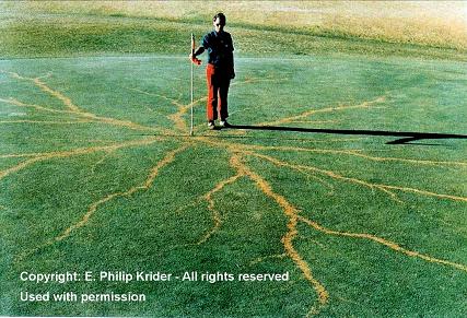 When lightning strikes the ground or an object on the ground, the discharge occurs in and along the ground surface (not deep into the ground). This creates a dangerous and potentially deadly ground current near the lightning strike.